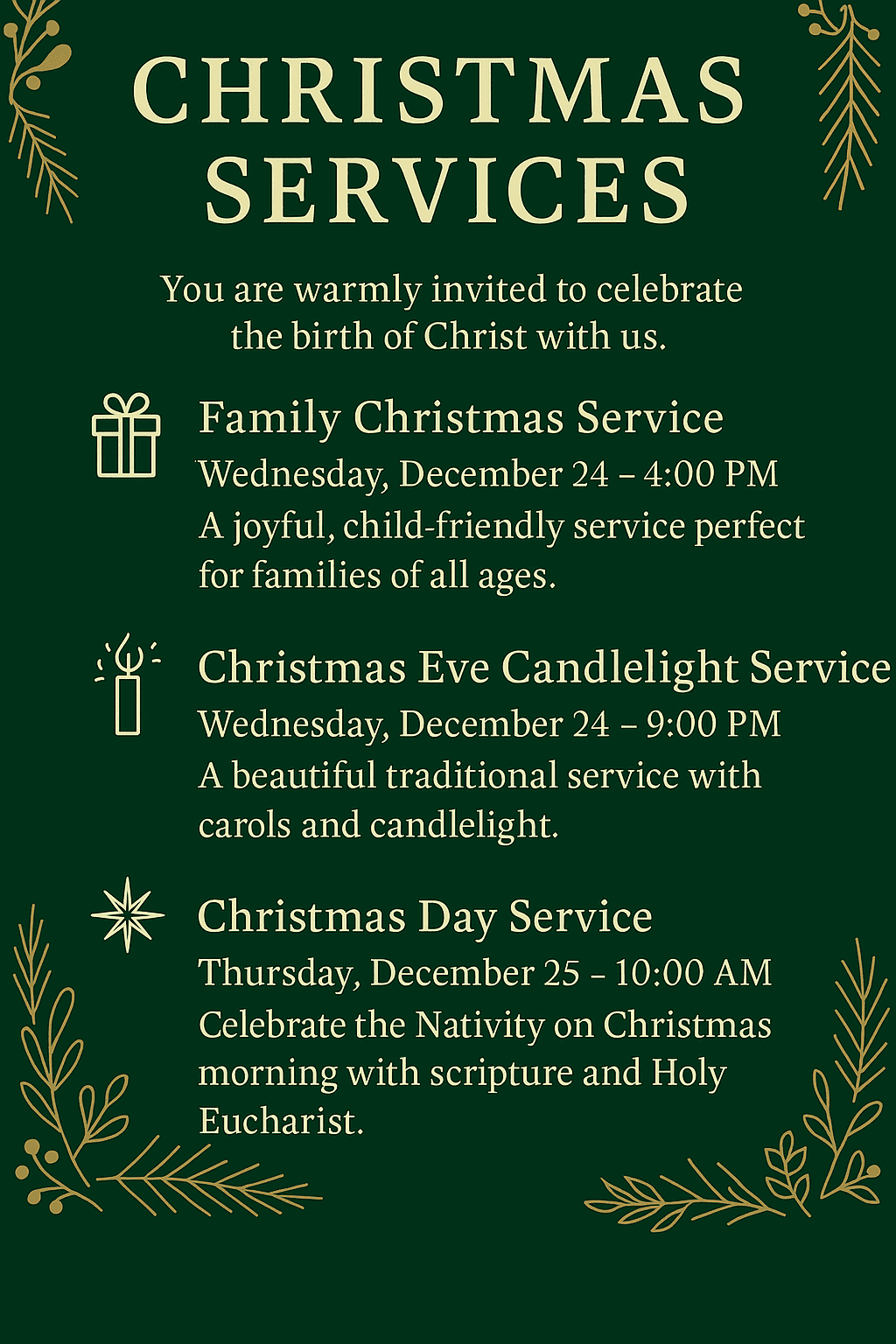 Join us at 10:00AM as we celebrate the nativity on Christmas morning with scripture and Holy Eucharist.